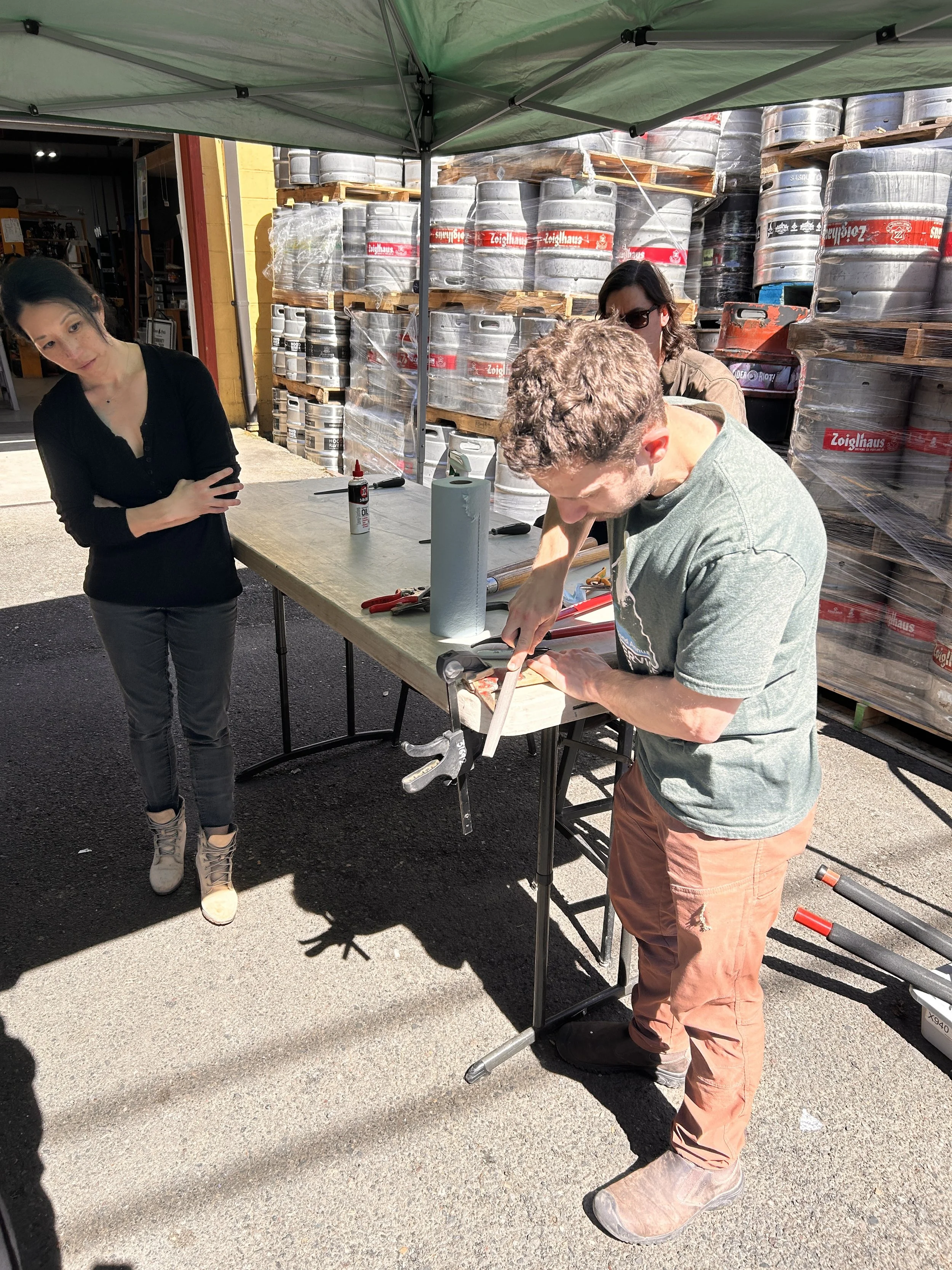 ¡Nuestro taller de aprendizaje para afilar herramientas de jardinería fue todo un éxito! Nueve personas participaron afilando herramientas, mejorando así la experiencia para las personas usuarias de la Biblioteca de Herramientas. Disfrutamos la actividad al aire libre, aprovechando el maravilloso clima primaveral. ¡Un agradecimiento especial a Alex por compartir su experiencia y conocimientos!